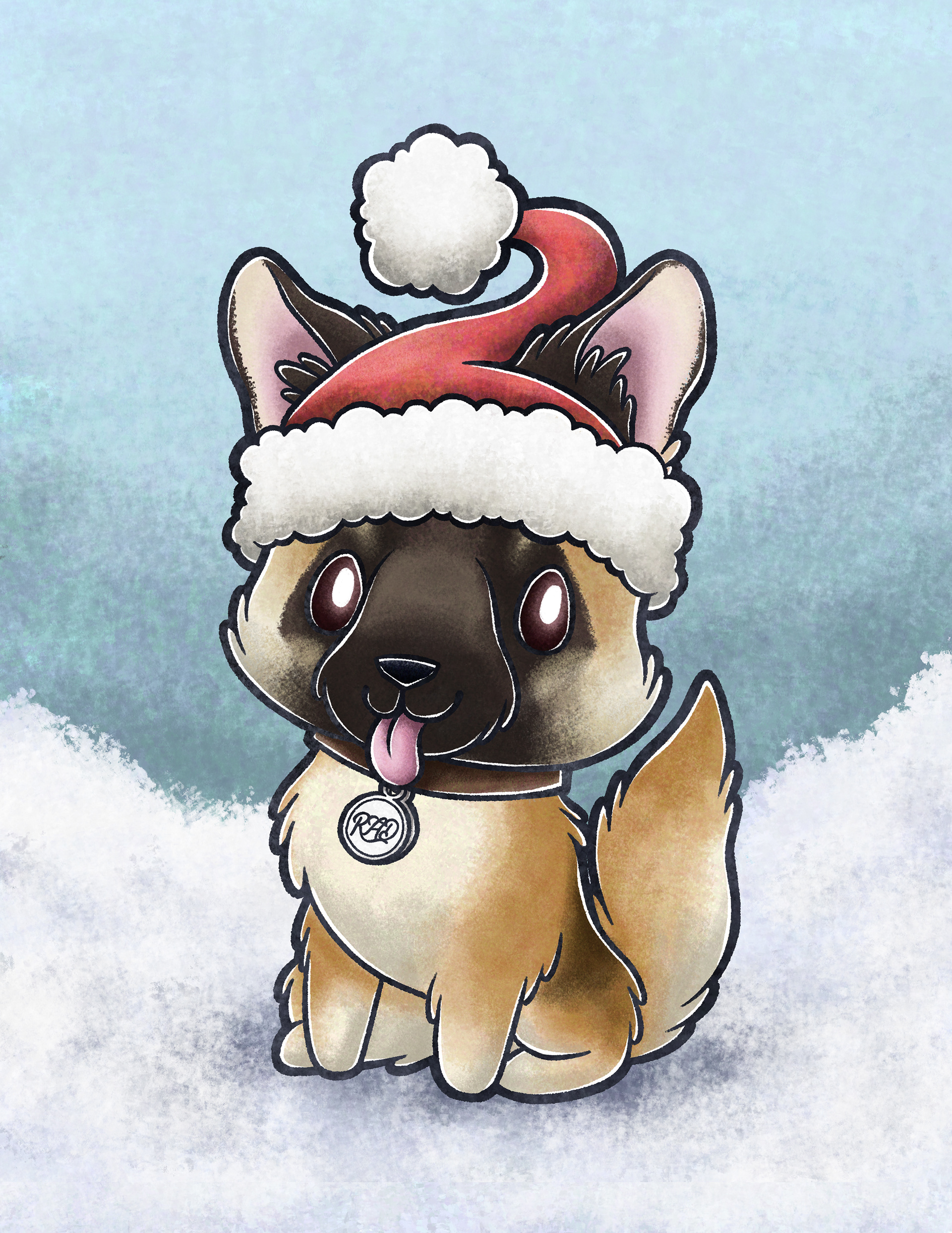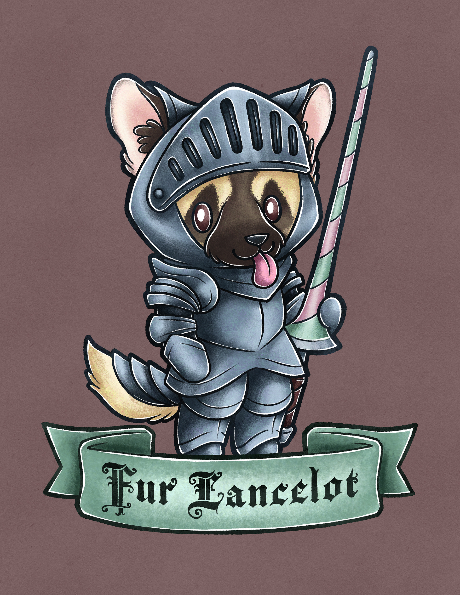 The second commission was a pet portrait of a friend's dog, Lance. I like talking to a client and finding out as much as I can so I can come up with the perfect piece for them, and this project did not disappoint! I came up with 4 variations of Lance: Regular Lance which I turned into Santa Lance and Lance based on the Grinch's dog, Max. My favorite of the set is Fur Lancelot which is lance in full knight gear!