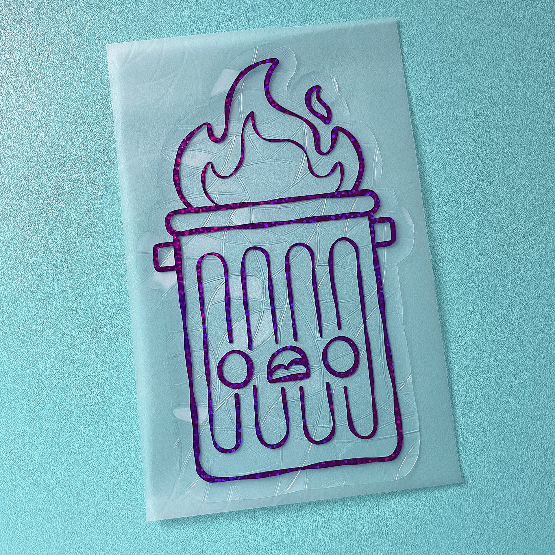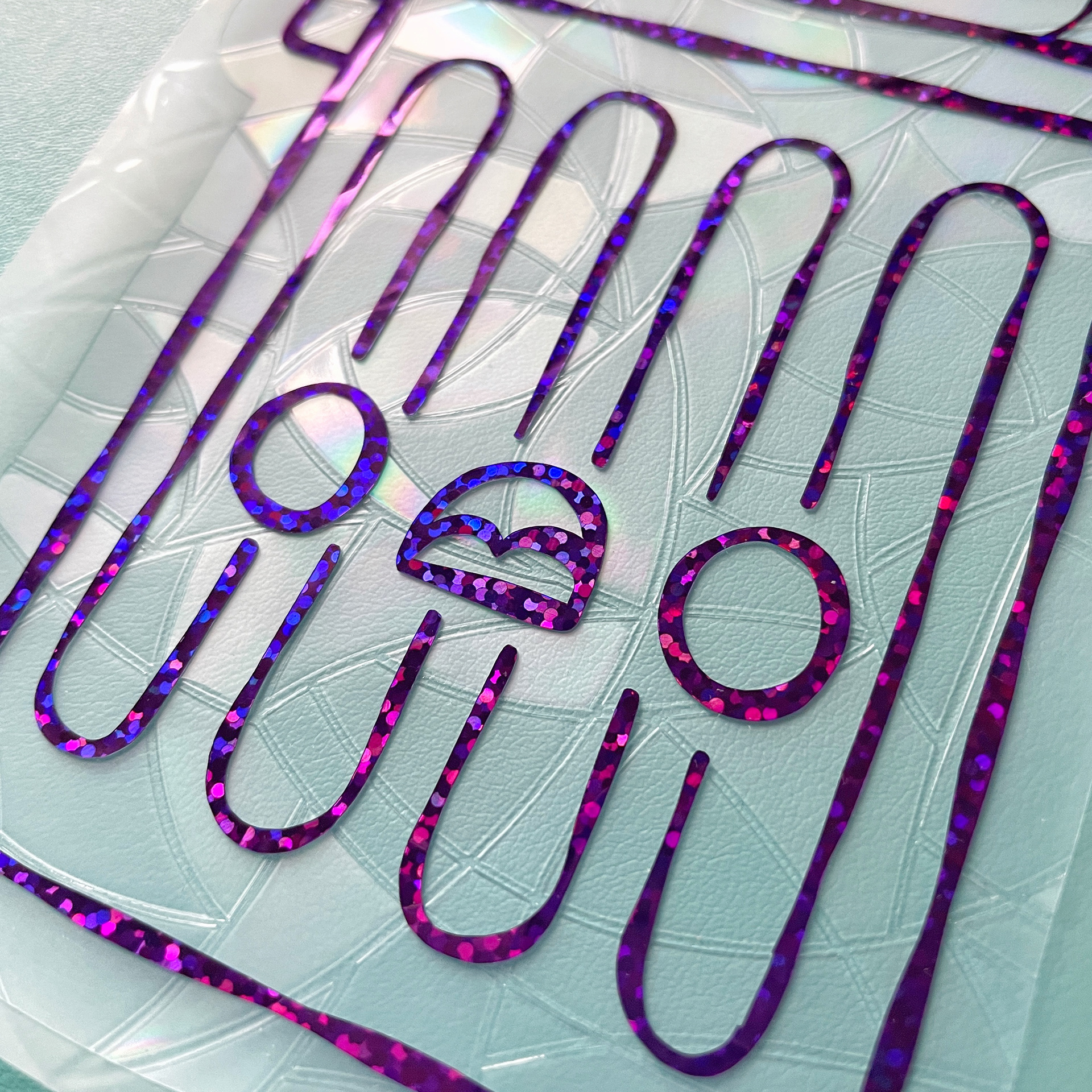 I've also been experimenting with other stuff, like static cling window decals! Two sides of our place get full-on direct sunlight most of the day and I've been seeing people stick up holographic film and suncatchers on their windows to create cool rainbow lighting effects when the sun shines thru them. I found some holographic static cling online and created some decals to test out. Sadly, it's just been rainy and overcast lately. I'm hoping there's some breaks in the clouds today between the rain so I can see how well they work!